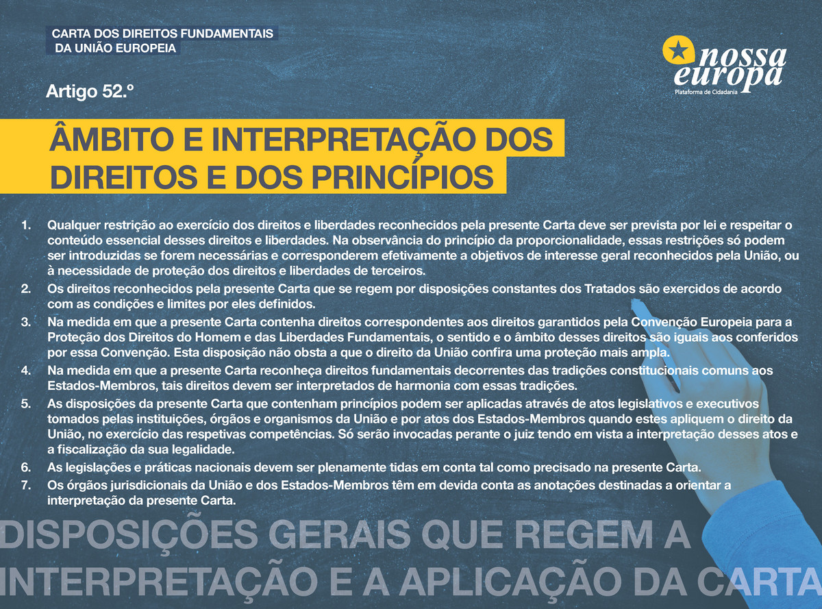 A presente Carta reafirma, no respeito pelas atribuições e competências da União e na observância do princípio da subsidiariedade, os direitos que decorrem, nomeadamente, das tradições constitucionais e das obrigações internacionais comuns aos Estados-Membros, da Convenção Europeia para a Proteção dos Direitos do Homem e das Liberdades Fundamentais, das Cartas Sociais aprovadas pela União e pelo Conselho da Europa, bem como da jurisprudência do Tribunal de Justiça da União Europeia e do Tribunal Europeu dos Direitos do Homem. Neste contexto, a Carta será interpretada pelos órgãos jurisdicionais da União e dos Estados-Membros tendo na devida conta as anotações elaboradas sob a autoridade do Praesidium da Convenção que redigiu a Carta e atualizadas sob a responsabilidade do Praesidium da Convenção Europeia.